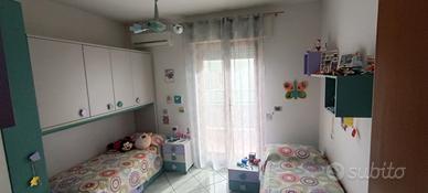 Vendesi luminosissimo appartamento angolare composto da sala, cucina abitabile, tre camere da letto di cui una con cabina armadio, due bagni, un ripostiglio e balconi. L'appartamento si vende parzialmente arredato in stile moderno. Presenti condizionatori in tutti gli ambienti. Infissi a taglio termico legno/alluminio con zanzariere. Caldaia recentemente sostituita ed ancora in garanzia. Incluso box singolo di 28 mq e cantina. L'edificio è dotato di ascensore.