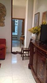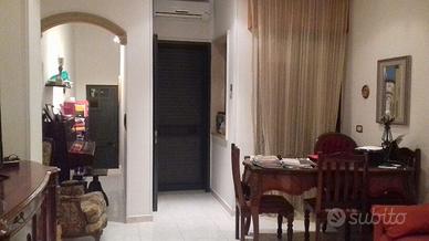 Appartamento piano terra zona centrale con numerosi servizi composta da: doppio ingresso, luminoso soggiorno con due balconi, cucina, due bagni, due camere da letto finestrati e con grande balcone su giardinetto, tavernetta con garage e spazioso ripostiglio, da qui accesso strada.