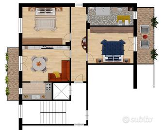 Posto al secondo piano con ascensore e privo di barriere architettoniche, si presenta in splendide condizioni generali ed è composto da ampio ingresso, cucinino, soggiorno con sfogo su balcone a tutta lunghezza, due ampie camere matrimoniali, bagno con doccia recentemente ristrutturato ed ampio terrazzino coperto.