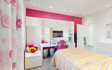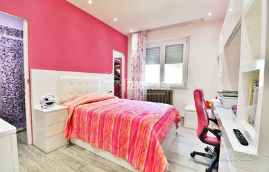 COMPOSIZIONE: ingresso, ampio e luminoso soggiorno, cucina abitabile, disimpegno , zona notte con due camere matrimoniali, di cui una con cabina armadio, cameretta, due bagni, uno dei quali en-suite e due balconi, di cui uno attrezzato con ulteriore cucina.