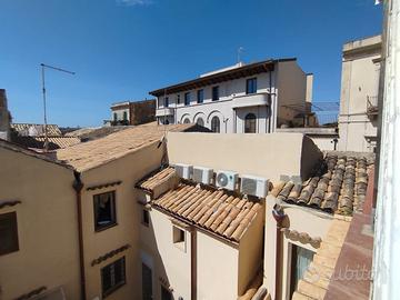 Piano primo si compone da ingresso, salone dotato di camino e 2 balconi su via del Castello Maniace, cucina e soggiorno per poter pranzare e accesso al primo terrazzo con lavanderia, camera, bagno e ripostiglio ricavato nel sottoscala;
