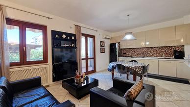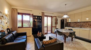 Situato in una zona residenziale tranquilla e ben servita proponiamo un luminoso appartamento di 75 mq L'immobile è posto al piano rialzato ed è composto da ingresso, cucina living ,camera matrimoniale, cameretta, due bagni, due balconi e un terrazzo di 100 mq ideale per momenti di relax all'aperto. Completa la proprietà un box auto di 30 mq circa posto al piano interrato. La posizione strategica permette di raggiungere facilmente la stazione ferroviaria, stazione di ricarica, benzinaio, parcheggio, clinica e farmacia. L'appartamento è attualmente occupato dal proprietario e sarà disponibile al passaggio delle chiavi al rogito notarile. Ideale per chi cerca una soluzione abitativa confortevole e ben posizionata. Contattaci per organizzare una visita!