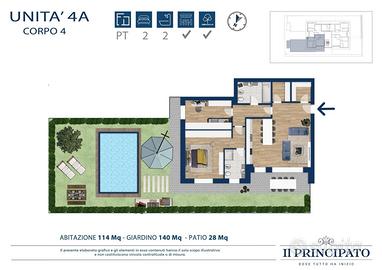 IL PRINCIPATO. Dove tutto ha inizio! IL PRINCIPATO MAGENTA è un piccolo borgo riservato dove regnano tranquillità e privacy. Il progetto prevede appartamenti e ville, disegnati per famiglie con caratteri differenti, che qui potranno dare forma ai loro desideri. Tutte le case sono animate dal fluire della luce attraverso le grandi vetrate, in un incantevole gioco di richiami tra interni ed esterni, che valorizza gli spazi. Proponiamo spazioso trilocale al piano terreno, di 114 mq. L'immobile è realizzato con materiali di pregio e tecnologie costruttive di ultima generazione, per garantire massimo comfort abitativo e alta efficienza energetica. L'abitazione si compone di ampia zona giorno open space con cucina a vista, un pratico ripostiglio all'ingresso da utilizzare come armadiatura o cappottiera, il disimpegno conduce alla zona notte che vanta una camera matrimoniale, con bagno privato, una cameretta ed un secondo bagno. A completare la proprietà il patio esterno, di circa 28 mq, che ci accompagna allo splendido giardino privato di 140mq. Disponibilità di cantine e box singoli/doppi. Consegna prevista fine 2026. Vi aspettiamo in ufficio per illustrarvi il progetto! https://ilprincipatomagenta.it/ RIF. 4A