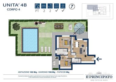 IL PRINCIPATO. Dove tutto ha inizio! IL PRINCIPATO MAGENTA è un piccolo borgo riservato dove regnano tranquillità e privacy. Il progetto prevede appartamenti e ville, disegnati per famiglie con caratteri differenti, che qui potranno dare forma ai loro desideri. Tutte le case sono animate dal fluire della luce attraverso le grandi vetrate, in un incantevole gioco di richiami tra interni ed esterni, che valorizza gli spazi. Proponiamo trilocale al piano terreno, di 102 mq. L'immobile è realizzato con materiali di pregio e tecnologie costruttive di ultima generazione, per garantire massimo comfort abitativo e alta efficienza energetica. L'abitazione si compone di ingresso, zona giorno open space con cucina a vista, il disimpegno conduce alla zona notte che vanta due grandi camere da letto, doppi servizi ed un pratico ripostiglio. A completare la proprietà il patio esterno, di circa 31 mq, che ci accompagna allo splendido giardino privato di 190mq. Disponibilità di cantine e box singoli/doppi. Consegna prevista fine 2026. Vi aspettiamo in ufficio per illustrarvi il progetto! https://ilprincipatomagenta.it/ RIF. 4B