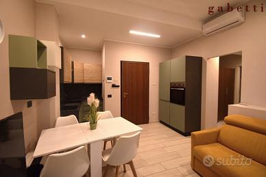 Situato in una zona residenziale servita e ben collegata, che permette di avere tutto a portata di mano, senza rinunciare alla quiete di casa. Questo accogliente bilocale ristrutturato di circa 50 mq è già pronto per essere vissuto. Un appartamento intimo e funzionale che ci apre le porte su un soggiorno con angolo cottura, organizzato in ogni suo spazio; un pratico disimpegno, arricchito da un'ampia armadiatura su misura, custodisce con discrezione anche lo spazio dedicato a lavatrice ed asciugatrice, un dettaglio che semplifica la quotidianità senza rinunciare all'eleganza. Il bagno, moderno e curato, è dotato di box doccia, infine troviamo la camera da letto, ampia e silenziosa. L'appartamento è pensato per offrire comfort immediato, con aria condizionata in zona giorno ed in zona notte, serramenti in PVC con doppi vetri e videocitofono. Inoltre, sono già inclusi la cucina completa, il bagno arredato e l'armadiatura del disimpegno: un valore aggiunto che rende questa soluzione ancora più pronta da vivere. A completare la proprietà, una comoda cantina al piano interrato. Rif.2703