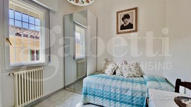 La zona notte ospita una camera matrimoniale silenziosa e ben arieggiata, una camera singola funzionale e un bagno finestrato completo di box doccia moderno.