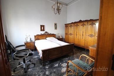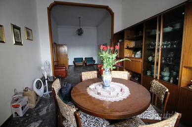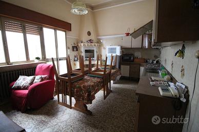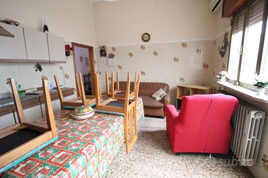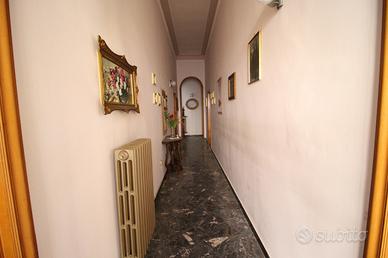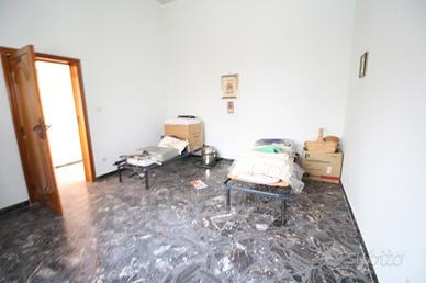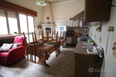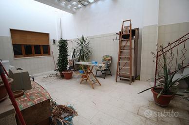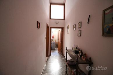 Casa indipendente piano rialzato in zona semicentrale composta da ampio ingresso-soggiorno, disimpegno, due camere da letto, cucina abitabile, bagno, spazioso cortile, garage al piano terra con secondo bagno.