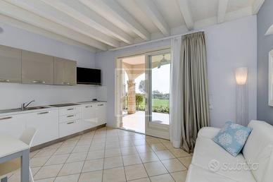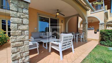 Trilocale al piano terra con MAGNIFICA VISTA LAGO in vendita in uno dei Resort più esclusivi di Manerba del Garda.