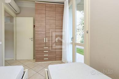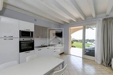 A Manerba del Garda, in posizione semicentrale vicino ai servizi, alle spiagge e al porto di Dusano, proponiamo all'interno dell'esclusivo Montecolo Resort appartamento trilocale al piano terra con bella vista lago dalla zona giorno e da ogni spazio esterno.