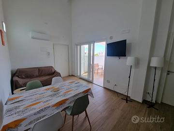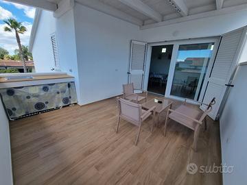 L' immobile servito da un ingresso indipendente si compone da ingresso su soggiorno con angolo cottura, 2 camere matrimoniali + divano letto, 2 bagni, di un ampio terrazzo attrezzato, lavatoio, deposito parcheggio privato.