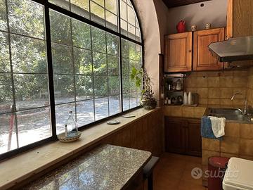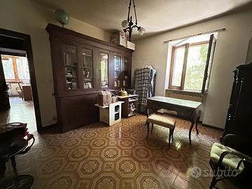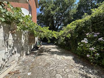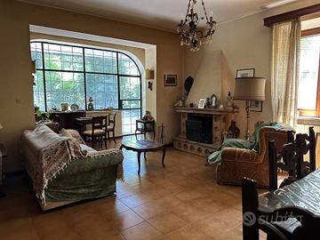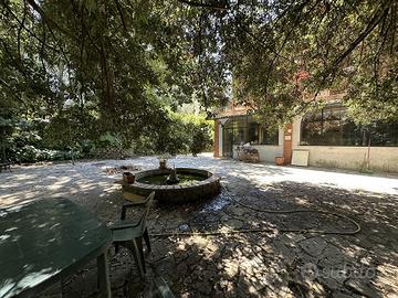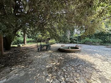 MANZIANA: A poca distanza dal paese, in località Scopetoni, immersa nel verde, ampia e comoda porzione di villa al piano terra di 140 mq, composta da soggiorno con camino, cucina, tinello, 3 camere, 2 bagni. Bel giardino alberato di 500 mq con annessi, autorimessa, magazzino, deposito e box in legno.