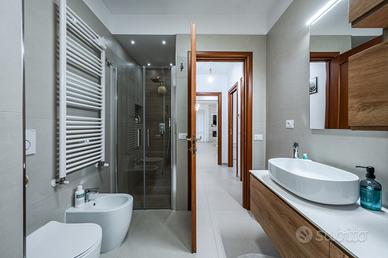 bagno finestrato elegantemente rifinito,