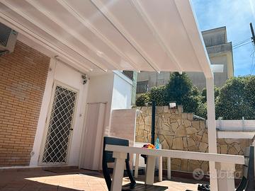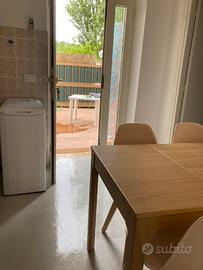 Appartamento a 100 metri dal mare FOCE VERDE LATINA arreda con 4 posti letto; con spazio esterno privato , con pergolatenda,climatizzatore, cucina induzione, televisore, radio, + doccia esterna,
