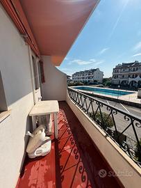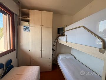 In un residence privato con accesso diretto alla spiaggia, vendesi appartamento di angolo: -25 mq - primo piano - fronte piscina - una camera da letto - un bagno finestrato appena ristrutturato - ampio terrazzo - impianto elettrico del 2021 - climatizzatore - mobili perfetti fatti su misura - frigo e lavatrice nuovi - . In aggiunta quote piscina e campi da tennis (ingresso consentito a due persone), posto auto all'interno del residence, cantinetta 12 mq per rimessaggio biciclette/sdraio/ombrelloni etc vicino alla spiaggia. Distanza dalla spiaggia circa 200 mt. Usufruibile subito dopo la vendita.