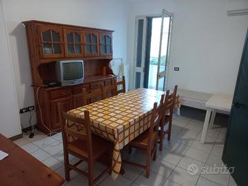 In località San Foca, (Marina di Melendugno)a c.ca 300 m.dalle spiagge libere e dagli stabilimenti balneari,raggiungibili a piedi in meno di 10 minuti ,in strada privata accessibile ai veicoli dei soli proprietari e affittuari,primo di una serie di appartamenti edificati a schiera, situato al piano primo composto da 3 vani più servizi, (cucinotto ×bagno con doccia)dispone di 5 posti letto ( 2 + 2 nelle 2 camere di cui una matrimoniale e l'altro nel soggiorno ),dotato di aria condizionata ,arredato e provvisto di tutti i necessari elettrodomestici,utensili e suppellettili utili alla conservazione, preparazione e consumazione di pasti a