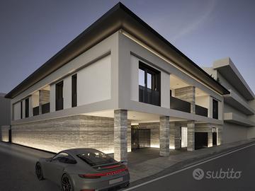 La palazzina si sviluppa su tre piani fuori terra per un totale di 6 appartamenti di diverse metrature ed un locale commerciale. Al piano terra troviamo l'atrio di ingresso con il suo giardino comune, il locale commerciale, la centrale termica e il locale spazzatura condominiale.