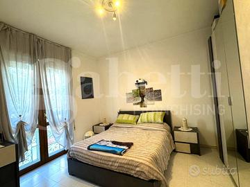 Internamente siamo accolti nella zona giorno divisa tra il Soggiorno con l'angolo cottura a scomparsa, disimpegno, Camera Matrimoniale, Cameretta e Bagno finestrato con doccia. Due balconi con accesso sia dal soggiorno che dalla camera.