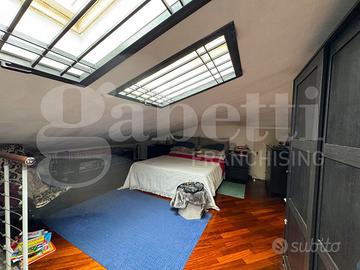 La casa ha una superficie di 70mq ben distribuiti: siamo accolti nella zona giorno divisa tra Angolo Cottura e Soggiorno, disimpegno, Camera da letto matrimoniale, Bagno (No Finestrato) e Terrazzino con vista aperta sul verde; al piano superiore un ambiente mansardato, con lavatoio e un ulteriore balcone panoramico.