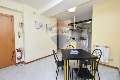 Interno: ingresso su luminosa cucina-soggiorno completa di mobili, elettrodomestici e divano; bagno completo di tutti i sanitari più boiler e finestra verso l'esterno; utilissima lavanderia completa di lavatrice; luminosa camera da letto matrimoniale con finestra vista mare e ulteriore vano con porta-finestra, adibito a cameretta con letto a castello. Ambiente climatizzato.