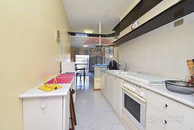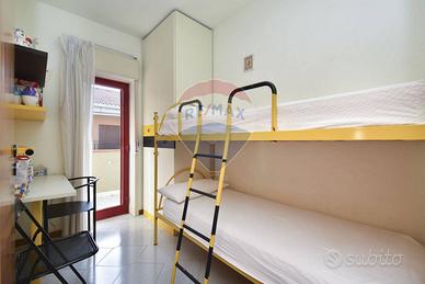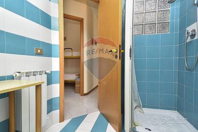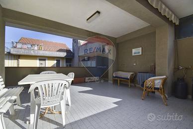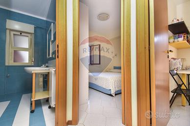 Esterno: posizione centrale sollevata da terra e riparata da un altro piano (di proprietà), che permette all'immobile di essere protetto dalla calura eccessiva e di non avere alcun problema di umidità, con balcone panoramico ed ampio terrazzo ideale per momenti conviviali. Accesso da pertinenze condominiali, ben delimitate da appositi cancelli, e giardino comune curato.