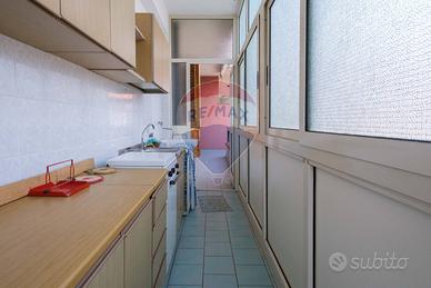 Ampia cucina abitabile, con accesso diretto al balcone in parte verandato e spazio sufficiente per ospitare comodamente anche un divano letto, rendendo la casa perfetta per accogliere ospiti o famiglie.
