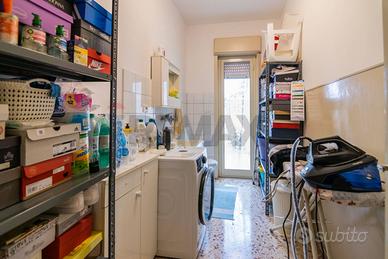 La zona notte comprende una camera da letto con balcone e unampia camera matrimoniale con finestra su strada, arricchita da un climatizzatore per garantire il massimo comfort. Il bagno, con doccia e finestra, è stato ristrutturato, mentre una pratica lavanderia con servizio completa la distribuzione interna, anchessa con porta finestra che conduce al terrazzo.