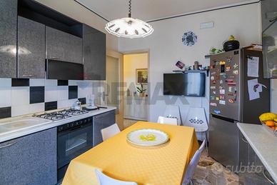 La cucina è abitabile e dotata di porta finestra, con accesso a un ampio terrazzo di circa 50 mq, completamente ristrutturato nel 2021 e dotato di comodo ripostiglio, perfetto per pranzi allaperto o momenti di relax.