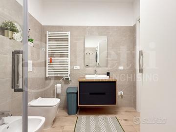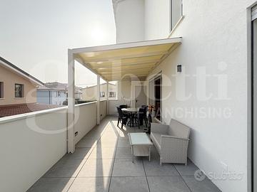L'appartamento che si trova al piano primo di un condominio di nuova realizzazione servito da ascensore, viene venduto arredato, con mobilio acquistato dai proprietari a Marzo 2025