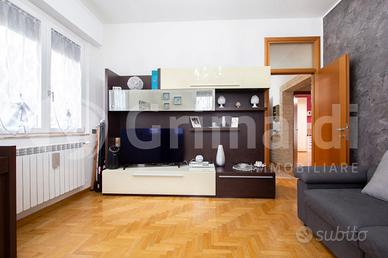 Tre locali con cucina separata, un bagno spazioso, box ampio di mq 34, soffitta di 87 mq raggiungibile da una botola nel pianerottolo, cantina ad uso lavanderia con carico e scarico lavatrice, lavatoio e piatto doccia.