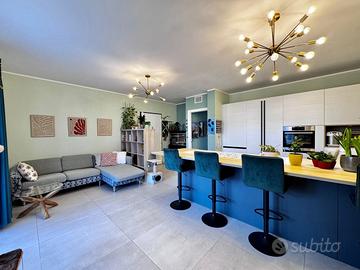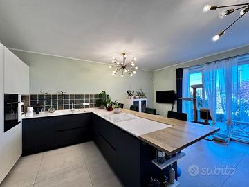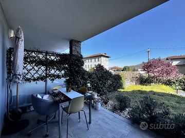 All'interno di un contesto moderno e riservato, proponiamo un raffinato trilocale di nuova costruzione, realizzato secondo elevati standard qualitativi e in Classe energetica A2, garanzia di efficienza e comfort abitativo. L'ingresso si apre su una luminosa zona living con cucina a vista, un ambiente ampio e armonioso valorizzato da grandi porte finestre che creano una continuità naturale tra interno ed esterno. Da qui si accede al patio coperto e al giardino privato, uno spazio intimo e curato, ideale per momenti di relax o per accogliere ospiti in un'atmosfera esclusiva. La zona notte, ben disimpegnata, ospita due camere da letto, di cui una con accesso diretto al balcone. Il bagno, finestrato, è rifinito con gusto contemporaneo ed è completo di elegante box doccia. A completare la proprietà, un comodo box auto singolo, un posto auto e un moderno impianto di climatizzazione canalizzato caldo/freddo, progettato per garantire il massimo benessere in ogni stagione Una soluzione abitativa di pregio, perfetta per chi ricerca stile, efficienza e qualità della vita, senza rinunciare alla privacy degli spazi esterni.