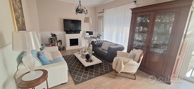 Il cuore della casa è il salone doppio, rifinito con cura nei dettagli, che offre ampio spazio per momenti di relax e convivialità. La sua disposizione aperta lo rende ideale per accogliere familiari e amici in un ambiente accogliente.