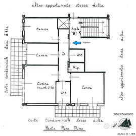 In zona sud, salita Larderia pressi zona industriale, Gabetti propone un luminoso appartamento in ottime condizioni. L'immobile ubicato al primo piano all' interno del "Complesso Oteri" ha come pertinenza un posto auto assegnato all'interno del cortile condominiale. L'unità abitativa è composta da: camera padronale con condizionatore, cameretta con accesso a uno dei due balconi, bagno padronale con vasca, secondo bagno con lavanderia e doccia, soggiorno, spaziosa cucina con condizionatore servita da balcone dove è stato ricavato un cucinino e a completare il tutto un ripostiglio. E' presente il riscaldamento autonomo con caldaia e caloriferi. L'attestazione di prestazione energetica è in fase di elaborazione