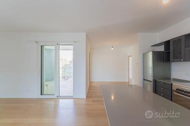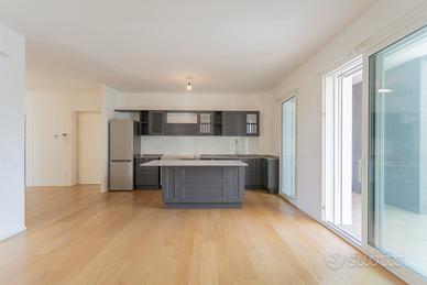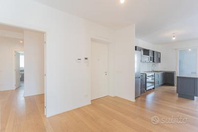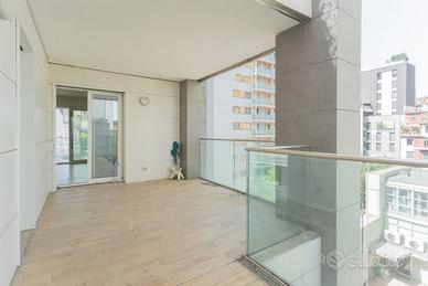 rif. 29/25 In via Filelfo, zona City life, servita da mezzi di superficie, e dalla vicinanza del passante ferroviario e dalla MM Lilla, in contesto signorile di recente costruzione (2017), proponiamo in locazione elegante appartamento dalla tripla esposizione. La soluzione posta al quarto piano è stata realizzata in classe A composta da doppio ingresso, soggiorno con cucina a vista con accesso a due terrazzi loggiati, camera matrimoniale con cabina armadio con accesso alla balconata due camere singole, doppi servizi, ripostiglio e cantina. Riscaldamento geotermico a pavimento con gestione autonoma, raffrescamento geotermico canalizzato, riciclo aria.