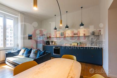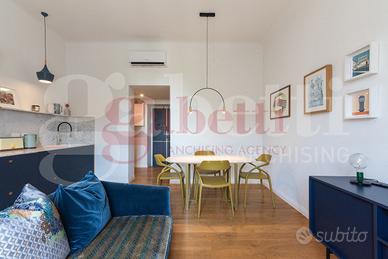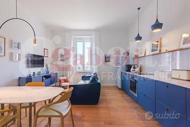Rif. 30/25 Gabetti Santa Rita / Famagosta - MM P. zza FRATTINI - Via Brunelleschi in zona ben collegata dai mezzi pubblici e ricca di servizi come negozi, supermercati e scuole in complesso d'epoca degli anni 30 proponiamo bellissimo trilocale di 85mq ca situato al 4 piano completamente ristrutturato nel 2020 con grande cura nei dettagli e materiali di pregio composto da ingresso, disimpegno, soggiorno con cucina a vista, balcone, due ampie camere, ripostiglio e bagno finestrato. Completa la soluzione solaio di pertinenza. Finiture: Porta blindata, infissi in PVC doppio vetro, A/C e domotica integrata. DA VEDERE! € 570.000, 00