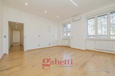 In stabile signorile di metà anni 60', proponiamo al piano rialzato, Trilocale RISTRUTTURATO e mai abitato, così composto: ingresso, ampio soggiorno con cucina a vista, disimpegno con ripostiglio in quota, due camere matrimoniali, bagno finestrato e solaio.