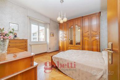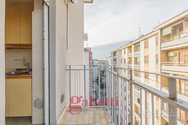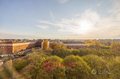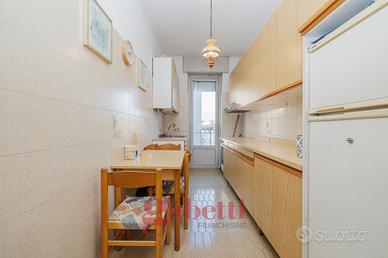 In stabile edificato alla fine anni '50 con portineria ed ascensore, proponiamo al settimo piano di otto appartamento panoramico di due locali così composto: ingresso, soggiorno con balcone che espone sul viale Caterina da Forlì, cucina abitabile con balcone di servizio che espone sulla corte interna, camera matrimoniale, bagno e cantina.