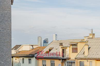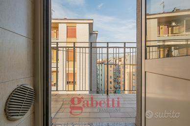 L'appartamento ha una tripla esposizione a Sud sul viale Caterina da Forlì, ad Ovest sul passaggio comune e Nord sulla corte condominiale.