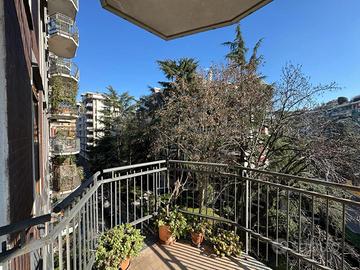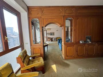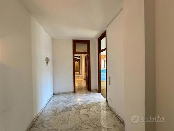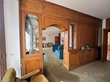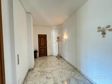 L'appartamento è cosi disposto: doppio ingresso, triplo soggiorno, cucina abitabile, quattro camera da letto, tre bagni, due ripostigli.