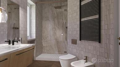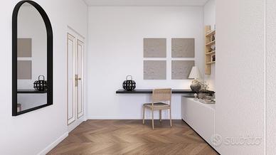 L'appartamento, si presenta in condizioni abitabili ed attualmente è diviso con ingresso che si apre sul corridoio dando accesso alla cucina abitabile e al soggiorno entrambi con balcone, alle due camere da letto matrimoniali e ai due bagni di cui uno finestrato. L'ampia metratura e la pianta regolare, permettono di trasformarlo in un quadrilocale con soggiorno/cucina a vista e tre camere da letto.