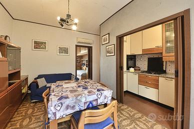 Trattasi di un 3 locali così disposto: ingresso che accede alla zona giorno con cucinotto finestrato, servizio igienico anch'esso finestrato e n. 2 camere da letto, di cui una munita di balcone. L'appartamento vanta una doppia esposizione in parete contrapposta che garantisce un ottimo ricambio d'aria con affaccio sull'ampio giardino condominiale.