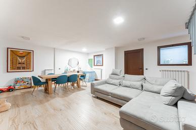 PIANO SEMINTERRATO: una comoda scala interna conduce ad un'ampia taverna open-space di 45 mq, ideale come seconda camera da letto o zona hobby, con possibilita' di creazione di un secondo bagno.
