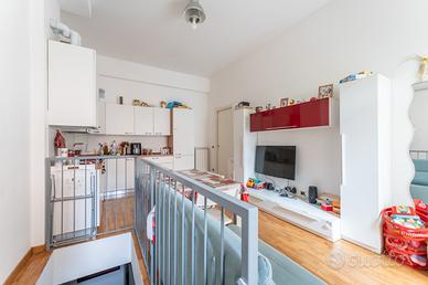 In VIA RUTILIA 19/5, a soli 4 minuti da FONDAZIONE PRADA e dall'area ove sta sorgendo il VILLAGGIO OLIMPICO, proponiamo in vendita SFIZIOSA SOLUZIONE di 2 LOCALI, situata su due livelli e composta da: