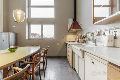 VIA PESTALOZZI - VIA ANDREA PONTI: In zona servitissima dai principali servizi quotidiani (farmacia, supermercati, bar, ristoranti, scuole, ecc), mezzi di trasporto in superficie e a due minuti a piedi dalla caratteristica Chiesa di San Cristoforo; proponiamo in contesto signorile di recente costruzione dotato di servizio ascensore, introvabile appartamento di design "Residenza Casa Righi" firmato dal noto Architetto Umberto Riva. La soluzione immobiliare è di 2 piani e distribuita su 3 livelli di complessivi mq 220 circa con doppio ingresso e con possibilità di creare due appartamenti.
