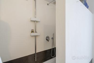 Spazioso bagno finestrato con sanitari sospesi e comoda doccia.