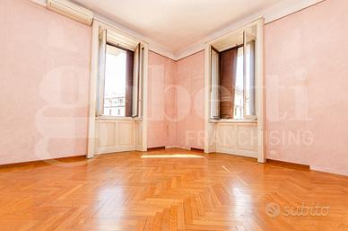 Argonne, nella richiestissima Piazza Guardi, in meraviglioso stabile d'epoca con portineria tutto il giorno e completamente ristrutturato nelle parti comuni, appartamento di 131mq, quarto piano, composto da ingresso con un ampio disimpegno, un bellissimo salone doppio con balcone, cucina abitabile con balcone, due grandissime camere di cui una con doppia finestra angolare e terzo balcone, un ampio bagno, cantina e solaio. Appartamento da ristrutturare con una bellissima esposizione angolare sulla piazza che lo rende molto luminoso. Possibilità di ricavare la terza camera mantenendo comunque l'enorme salone e un secondo servizio.