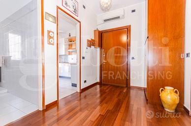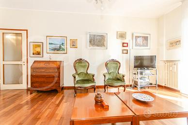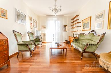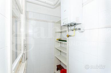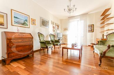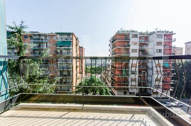 un balcone piu una grande balconata, solaio. Appartamento parzialmente ristrutturato con doppi vetri e parquet. Doppia esposizione e molto luminoso. Libero subito.