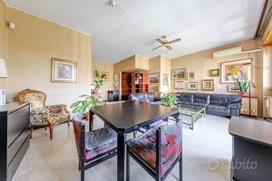 In stabile signorile con portineria, ascensore e giardino condominiale proponiamo in vendita interessante QUADRILOCALE di 155 mq ca cosi composto: Ingresso, ampio soggiorno con balcone, spaziosa cucina abitabile con balcone, disimpegno notte, 3 comode camere da letto, due bagni, ripostiglio e altro balcone.