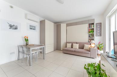 L'immobile, con doppia esposizione, risulta composto da ingresso, ambiente open space soggiorno / cucina / camera, disimpegno e bagno finestrato. Completa la proprietà una comoda cantina.