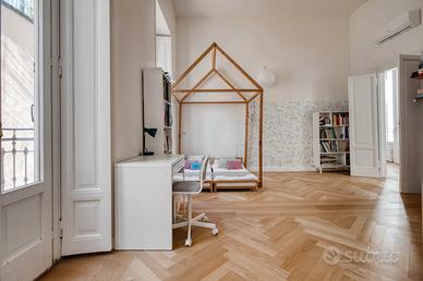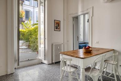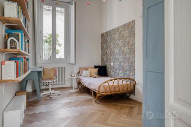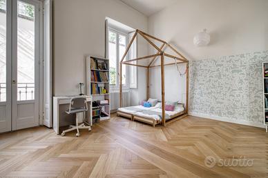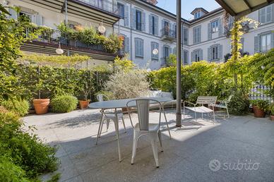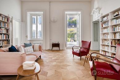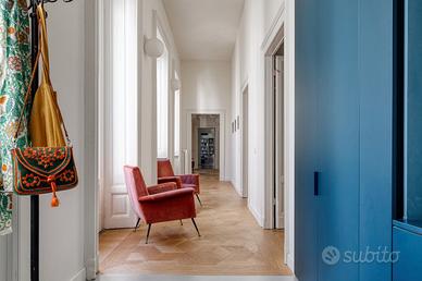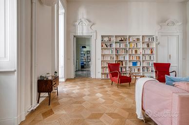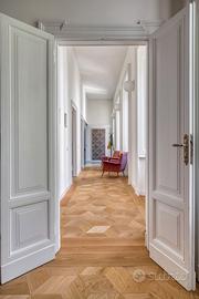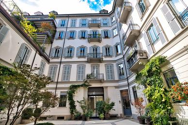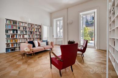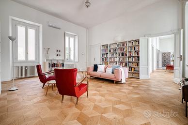 Foro Buonaparte in stabile di fine '800 che è stato oggetto di una completa ristrutturazione delle aree comuni terminata nel 2022, proponiamo al secondo piano con ascensore un plurilocale con terrazzo di proprietà. L'appartamento si sviluppa su una superficie di 210 mq c.a con una doppia esposizione interna: l'ampio e luminoso corridoio in ingresso conduce al soggiorno con doppia esposizione e accesso allo splendido terrazzo di 65 mq c.a. Sul terrazzo si affaccia anche l'ampia cucina abitabile; l'appartamento è poi composto da tre camere, attualmente una singola, una doppia già predisposta per essere eventualmente divisa in due singole, e la camera padronale con cabina armadio e bagno en suite, uno studio, tre bagni, uno per gli ospiti, uno che serve le camere singole, uno padronale nella master room, e una lavanderia. L'appartamento è stato anch'esso oggetto di una completa e fine ristrutturazione nel 2022 ad opera di un noto studio di architettura e che col mantenimento delle belle atmosfere d'epoca ha interessato pavimenti, muri e impianti: soffitti con altezza 3,98, porte doppio battente incorniciate da decori di fine '800, recupero degli infissi d'epoca con doppio vetro, parquet, aria condizionata. Lo stabile è servito da portineria tutto il giorno, cortile condominiale piantumato con vasche ornamentali. Ci troviamo in una delle aree più richieste e di interesse del centro storico, a due passi troviamo il Castello Sforzesco, area pedonale rifatta completamente nel 2022-2023 con nuove piante, pavimentazioni e corsie ciclabili e il polmone verde della città, il lussureggiante Parco Sempione. Una posizione privilegiata che consente anche di raggiungere in pochi minuti a piedi il quartiere di Brera, collegata con il resto della città con la metropolitana linea Rossa "Cairoli" e linea Verde "Lanza".