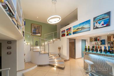 VIA CALIFORNIA_Splendido appartamento ad uso abitativo di 200 mq in ottime condizioni interne distribuito su due piani e cosi' composto: al piano terra di 180 mq ca ampia zona living con cucina a vista, stanza hobby, bagno, stanza con vasca idromassaggio e ripostiglio.